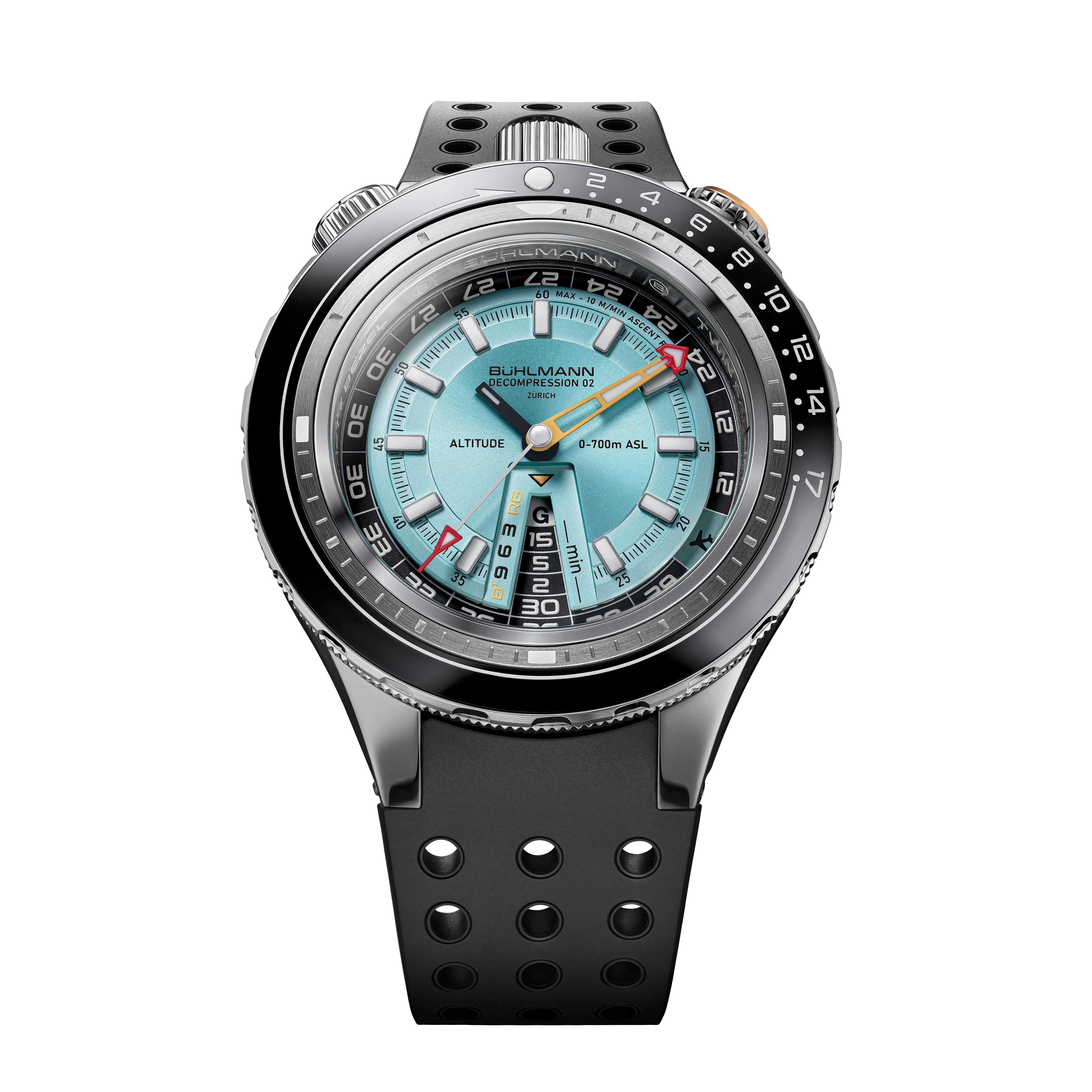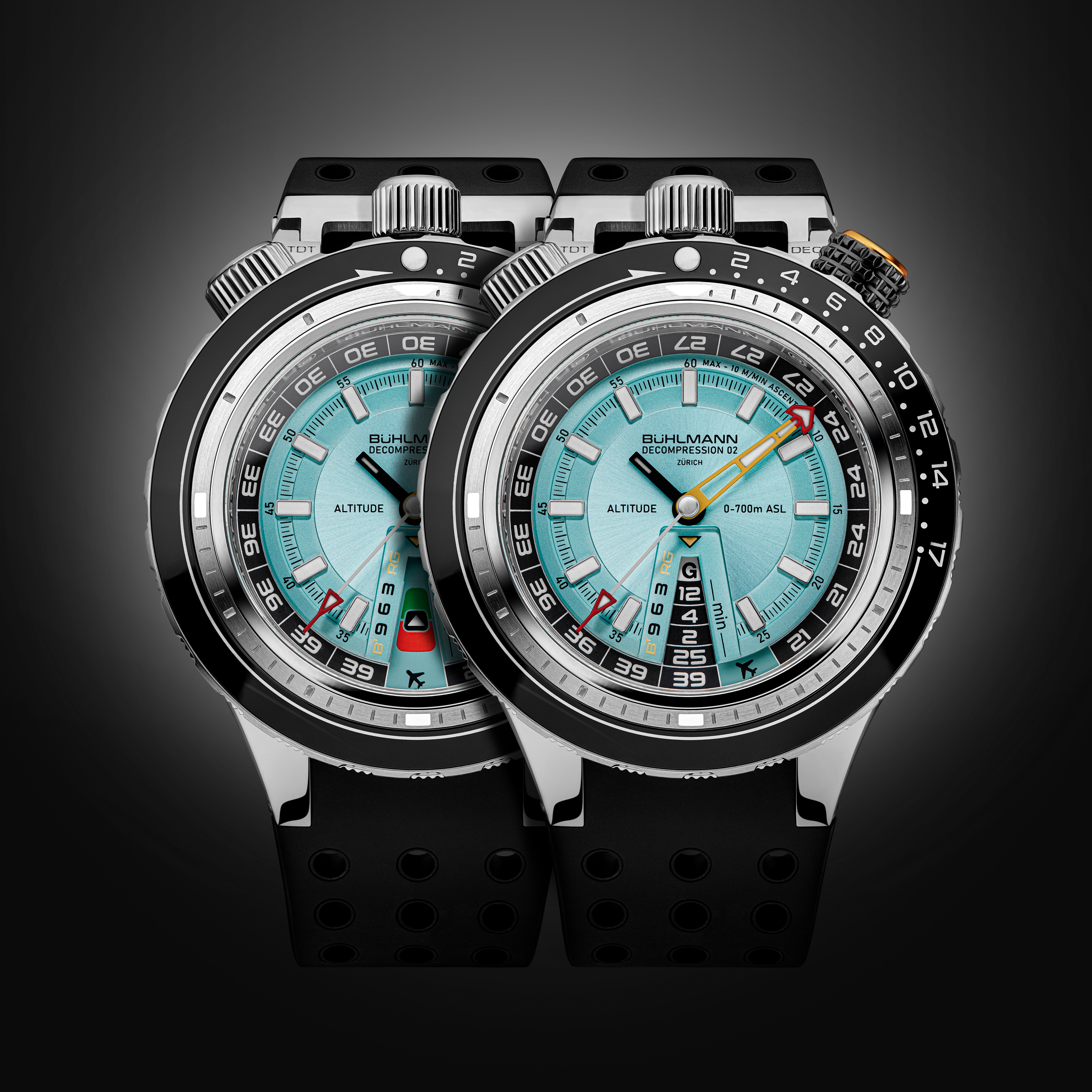 Better, Bolder and Safer than its precursor, the Decompression 02 is the functional and usability evolution of the widely acclaimed Bühlmann Decompression 01 first introduced in 2021. It is the first mechanical dive watch to feature a twin safety diving bezel and a twin decompression stops dial to safely manage decompression stops for dives in the "Golden Zone".